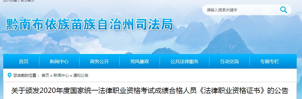 根据司法部、省司法厅通知要求,黔南州司法局将对黔南考区2020年度国家统一法律职业资格考试成绩合格人员颁发《法律职业资格证书》。现就有关事项公告如下: