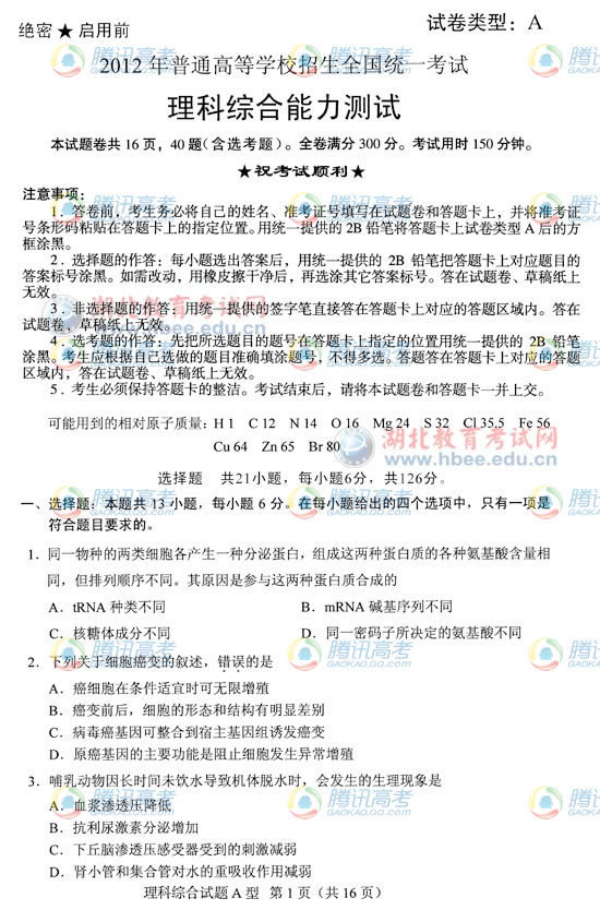 2024年湖北普通高中学业水平选择性考试生物真题及答案(Word版)