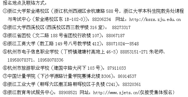 2013年3月浙江杭州计算机四级考试报名地点及联系方式