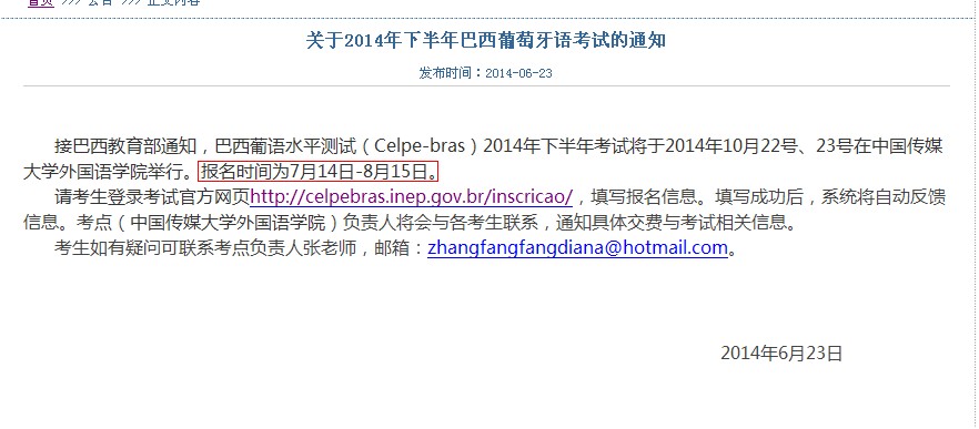 2014下半年巴西葡萄牙语报名时间:7月14日-8月15日