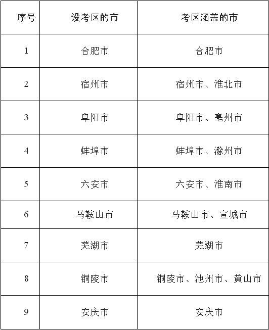 2015年我省共设9个考区(详见附件2),与2014年相比,相关考区涵盖的市有所调整,报名人员可自行选择方便参考的报名地。