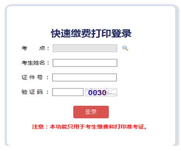 支付完成后,并在规定时间内登录报名系统登录页右上角‘快速登录’进行“准考证的打印”(准考证的打印时间为考前10天左右)